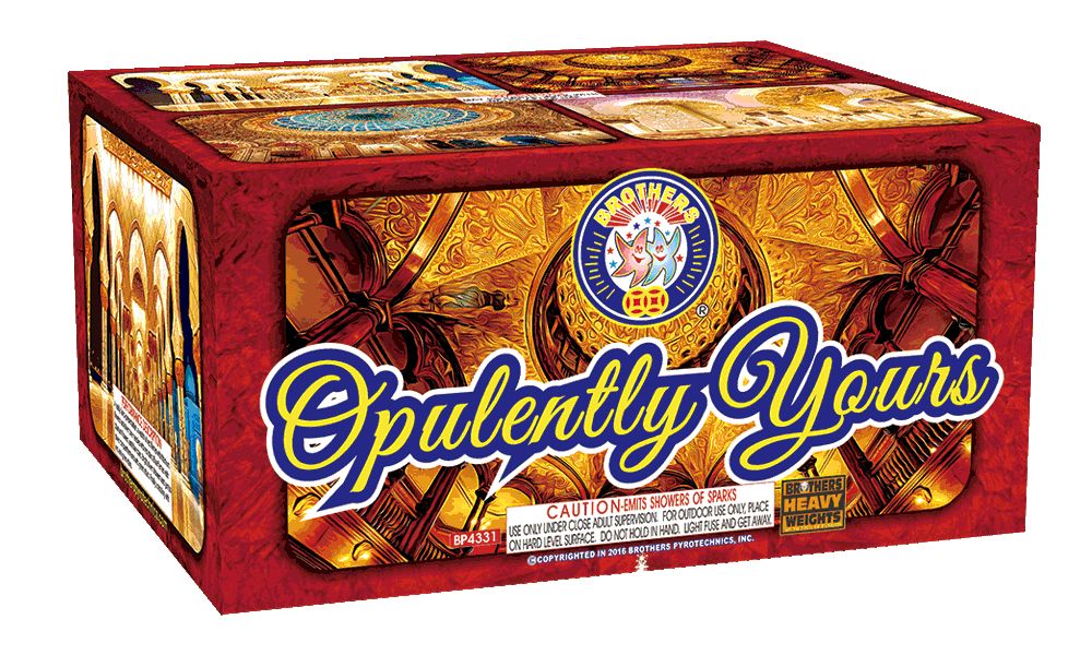 A really fancy presentation: a wealth of red flames with titanium flowers and silver pine needles with red stars. Blue flames with titanium flowers, and blue stars. Bright silver showers and jumbo silver chrysanthemums with green stars. Then crackling with red and green stars.