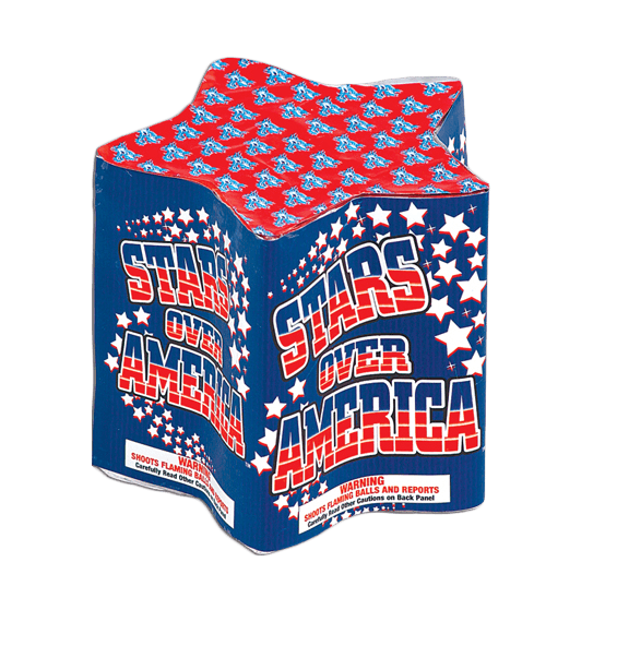 This star shaped fountain has it all: brilliant red, white and blue stars, whistles and crackling stars.